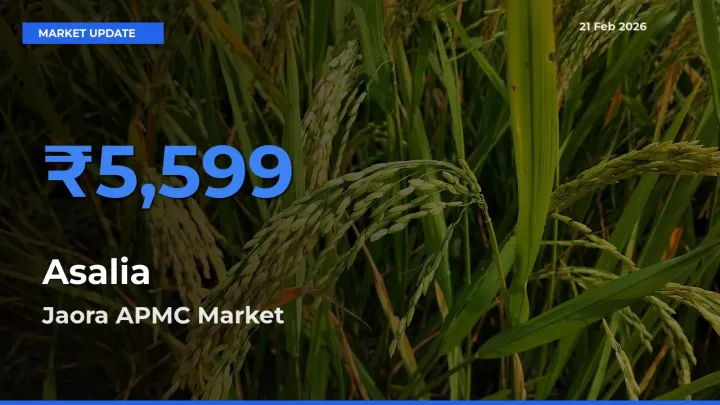 On 21 Feb 2026, Jaora APMC emerged as the top mandi for Asalia, setting the highest benchmark price of the day. Continued monitoring of daily mandi updates, arrival trends, and cross-market comparisons will determine whether this leadership sustains in upcoming sessions.