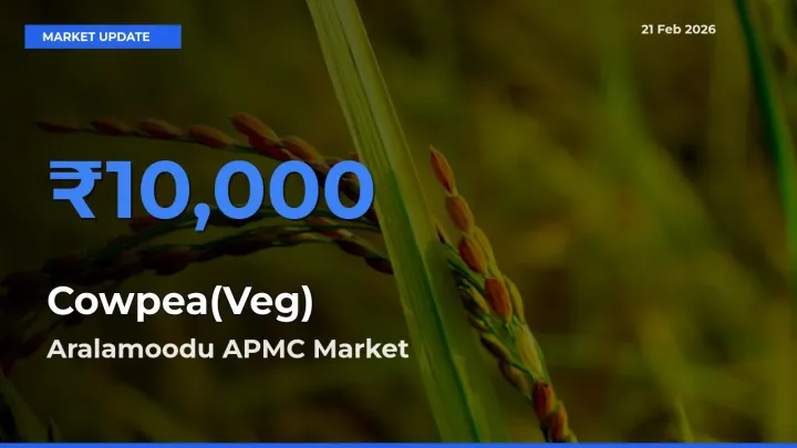 On 21 Feb 2026, Aralamoodu APMC emerged as the top-performing mandi for Cowpea(Veg), recording the highest traded price of ₹10,000 per quintal. Among all reporting markets, this mandi outperformed peers, setting the benchmark for the day.