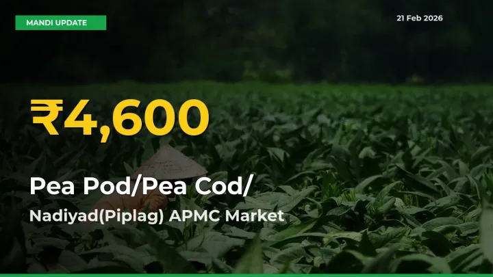 February 21, 2026 marked an important trading session at Nadiyad(Piplag) APMC, where Pea Pod/Pea Cod/हरी मटर recorded a daily highest price of ₹4,800 per quintal. The strong top rate indicates active buying interest and firm demand conditions in the physical market.